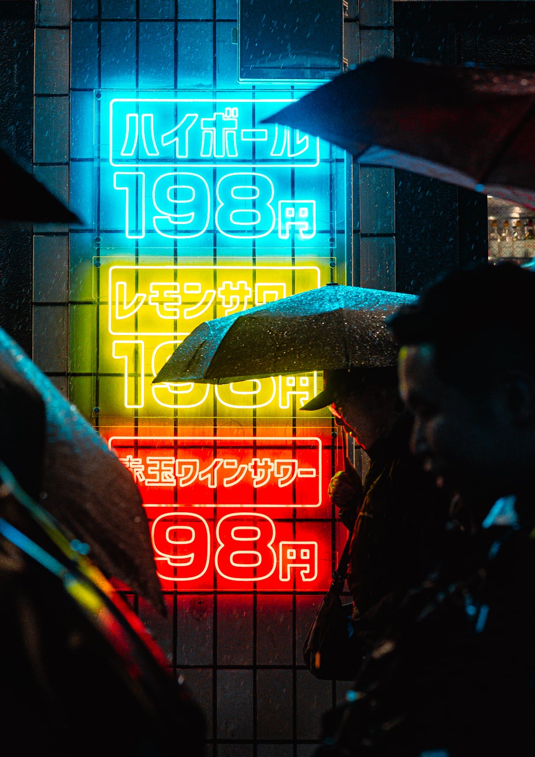 雨が降る金曜日の夜、鮮やかな色のネオンが目に映り、私は足を止めた。